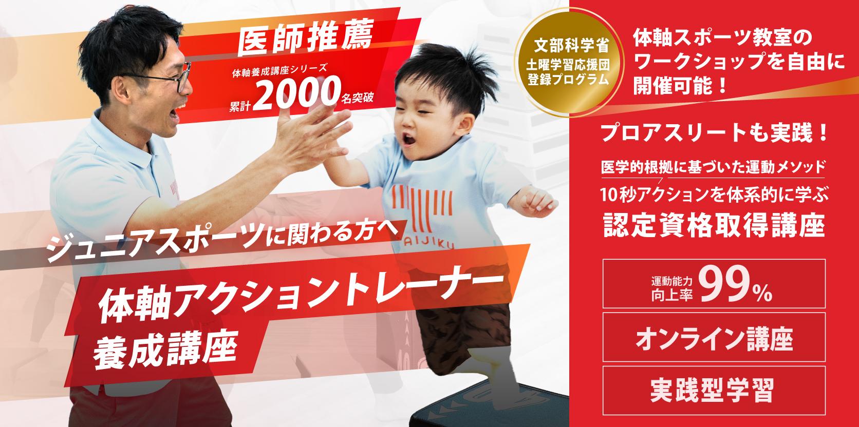 「体軸図鑑」を教材として活用し、ジュニア期に必要な“正しい身体の使い方”の基礎を伝えられる、体軸アクショントレーナー︎の認定資格が取得できる講座です。
